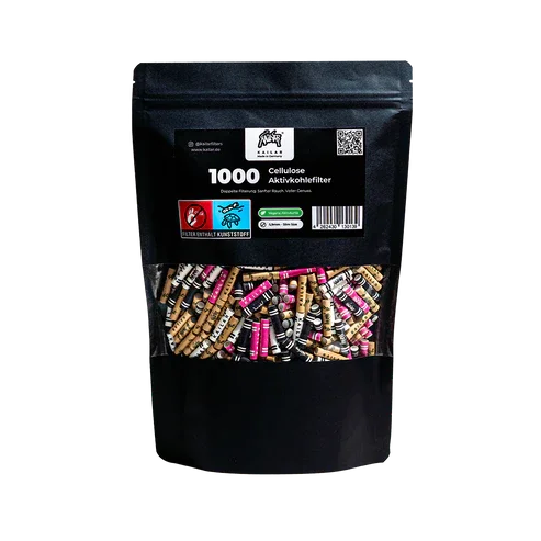 Die Kailar Aktivkohlefilter 1000 Stk. sind die perfekte Wahl für alle, die Wert auf ein besonders mildes und schonendes Raucherlebnis legen. Gefüllt mit veganer, hochqualitativer Aktivkohle aus Kokosnussschalen, filtern sie unerwünschte Schadstoffe, reduzieren Kratzen im Hals und liefern einen angenehm kühlen Smoke.